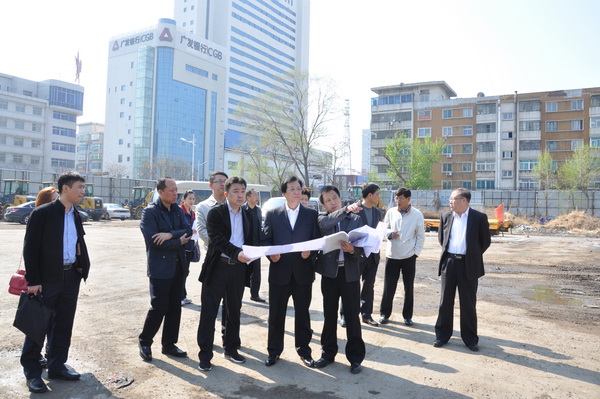 曹颖主席(居中)视察辽阳鸿飞金融中心建设工程项目